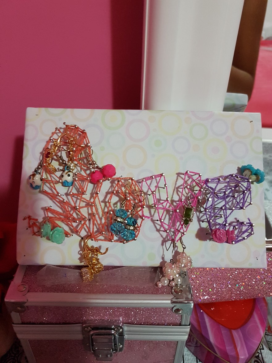 My cool earing holder This earing holder makes it easy for me to see all the variety of earing I have. My earing holder. Share this: Click to share on Facebook (Opens in new window) Facebook Click to share on X (Opens in new window) X Like Loading... Posted on July 11, 2017