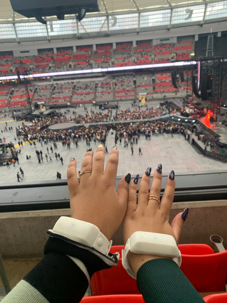 Got to the concert early, I was beyond excited . Got these light bands, which lit up during the concert. Also painted my own nails to match the theme of the concert